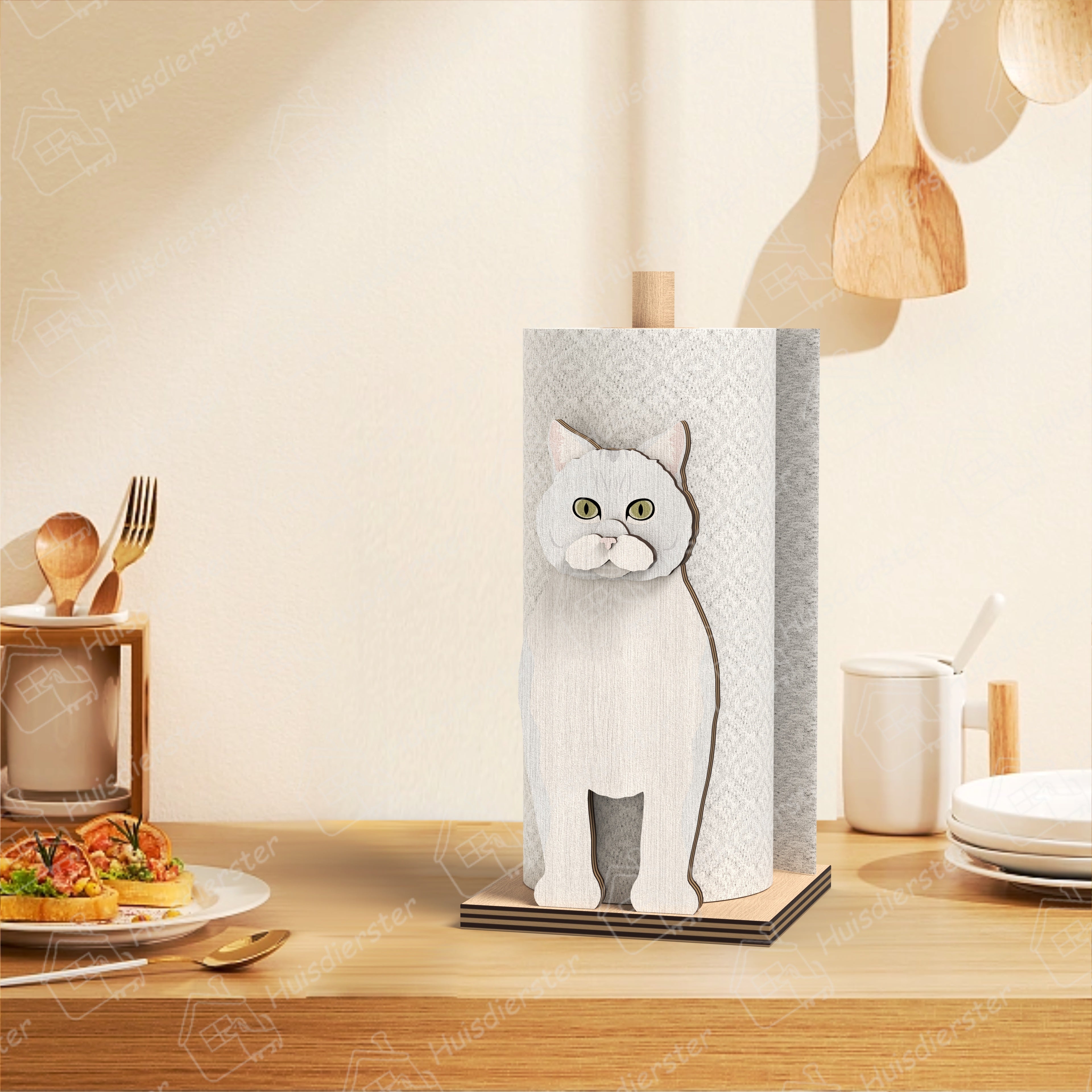 Onze keukenrolhouder heeft unieke, levensechte dierenontwerpen en aanpasbare naamplaatjes. Het combineert functionaliteit met stijl, waardoor het een geweldige keuze is voor huisdiereigenaren. Deze keukenrolhouder is stijlvol en functioneel en voegt een persoonlijke en decoratieve uitstraling toe aan uw huis.